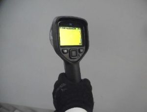 建物の外観からチェック開始。外壁のひび割れ、塗装の劣化、雨樋の状態などを細かく確認します。写真撮影は必須。後で報告書に活かすため、角度や光の入り方にも気を配ります。 - 漏水調査