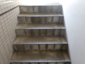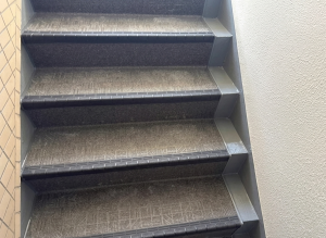 ・・・コンクリートだった階段・廊下の上に滑りずらい・デザイン性あるシートを張りました。